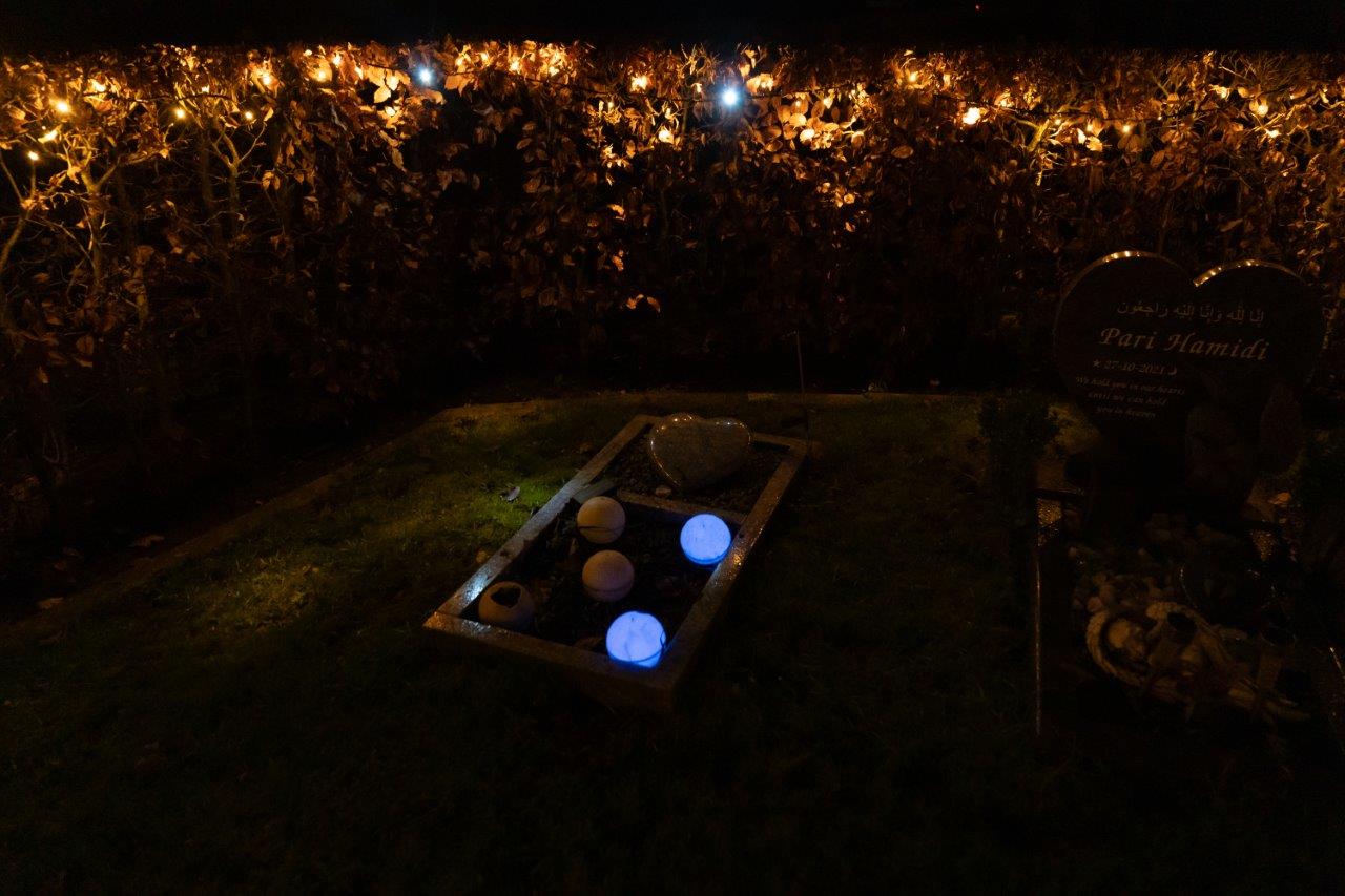 De Gemeente Zoetermeer stelt de begraafplaats met sfeervolle verlichting voor ons open en werkt mee aan de bekendmaking van onze herdenking, waarvoor onze grote dank.